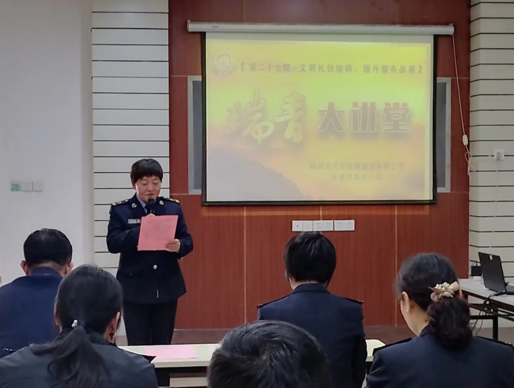 為弘揚(yáng)瑞青精神,建設(shè)瑞青品牌,創(chuàng)新服務(wù)舉措,提升服務(wù)質(zhì)量,汽運(yùn)集團(tuán)長(zhǎng)途汽車中心站舉辦了第二十七期瑞青大講堂服務(wù)禮儀篇——“提升服務(wù)質(zhì)量?做文明汽運(yùn)人”。