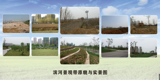 該項(xiàng)目位于蚌埠市淮上區(qū),南起淮北大堤堤頂,北至濱河路邊,為狹長型地塊,東西長約4.3公里,綠地景觀面積49萬平方米。項(xiàng)目建設(shè)之前,地塊上有附近村民自種的莊稼、小菜園,也有野生的雜草灌木,景色荒蕪蕭條。2013年,市委市政府要求對淮河北岸進(jìn)行環(huán)境整治,為人民群眾提供一個(gè)環(huán)境優(yōu)美,悠閑舒適的休閑場所,由城開公司負(fù)責(zé)項(xiàng)目建設(shè)。該項(xiàng)目采用工程總承包中設(shè)計(jì)施工一體化(DB)模式招標(biāo),由中標(biāo)人負(fù)責(zé)項(xiàng)目的設(shè)計(jì)施工。2014年11月完成項(xiàng)目的建設(shè)任務(wù),為廣大市民營造了一個(gè)以人為本的現(xiàn)代濱河休閑公園、綜合性景觀走廊,綠化植物有銀杏、香樟、桂花等,植物層次豐富,物種多樣,四季變化繁復(fù),覆蓋率在90%以上,展現(xiàn)了林成蔭、樹成群、草成片、花成叢的優(yōu)美景觀。